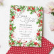 This is a budget friendly strawberry themed bridal shower invitation featuring a frame of watercolor strawberries, white flowers and greenery.