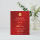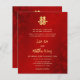 This version has a headline to announce the wedding by the parents of the bride and groom. This elegant Chinese wedding invitation features an artistic gold double happiness symbol on a floral ruby red shimmering background. Bride and groom names in an elegant handwritten script. Chinese wedding invitation or tea ceremony invitation.