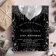 For an elegant 21st (or any age) birthday. A stylish black background. Decorated with faux silver glitter and balloons. Personalise and add a name, age and party details. The name is written with a hand lettered style script