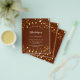 A brown background decorated with golden stars. Personalise and add a name and party details. The name is written with a hand lettered style script, white coloured letters.
