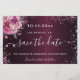 A modern Save the Date card for a 50th (or any age) birthday party. A burgundy faux metallic looking background colour. Decorated with pink florals, roses and faux glitter dust. The text: Save the Date is written with a large trendy hand lettered style script.