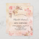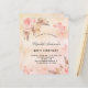 A rose gold, blush pink rustic faux metallic looking background. Decorated with rose gold and pink florals, roses, pampas grass and butterflies. Personalise and add a name and party details.