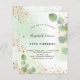For an elegant 50th (or any age) birthday party. A golden watercolored background decorated with eucalyptus greenery and faux gold glitter dust. Personalise and a name and party details. Black and golden coloured letters.