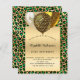 For an elegant 21st (or any age) birthday. An emerald green and gold leopard, cheetah pattern background. A golden frame and balloons. Personalise and add a name, age 21 and party details. The name is written with a hand lettered style script