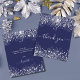 A navy blue background colour. Decorated with faux silver glitter dust. On front large white hand lettered script and the text: Thank You.
