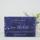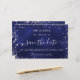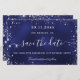 A girly and trendy Save the Date card for a 21st (or any age) birthday party. A navy blue uneven coloured background. Decorated with faux silver glitter dust. The text: Save the Date is written with a large trendy hand lettered style script.
