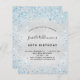 For an elegant 40th (or any age) birthday. A faux silver metallic looking background. Decorated with blue faux glitter dust. Personalise and add a name, age and party details. The name is written with a hand lettered style script