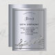 A trendy, modern 50th birthday party invitation card. A faux silver metallic looking background, with a frame and music notes, black coloured letters. Personalise and add a name and party information.