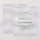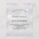A modern, elegant and minimalist birthday invitation. Faux silver metallic looking background decorated with purple faux glitter dust and a butterlfy as watermark. Personalise and add your names and wedding details. Black coloured letters.