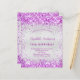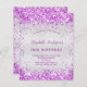 For an elegant 18th (or any age) birthday party. A silver faux metallic looking background. Decorated with purple and pink faux glitter. Personalise and add a name and party details. The name is written with a hand lettered style script