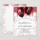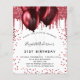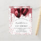 For an elegant 21st (or any age) birthday. A stylish white background. Decorated with red faux glitter and balloons. Personalise and add a name, age and party details. The name is written with a hand lettered style script