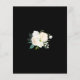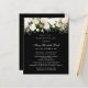 An elegant arrangement of white roses is nestled in dark green and gold leaves. White text pops on a black background. The deceased person's name is written in a traditional script text. All of the text can be easily edited to create a personal remembrance.