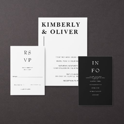 Budget Simple Minimal Modern Black and White Wedding Invitations