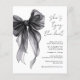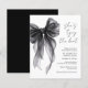 Charming budget-friendly bridal shower invitation featuring a beautiful watercolor of a black coquette bow, "She's tying the knot" in a chic script, and her name and the event details in simple modern lettering. This budget semi-gloss paper is similar in weight to photo paper. A larger 5x7 traditional card stock version is also available (message us for the link).