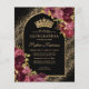 Modern Classic Elegant Glam Black Burgundy Maroon Red Gold Glitter Sparkle Floral 15th Birthday Quinceanera Invitation