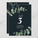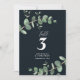 Beautiful delicate elegant budget eucalyptus foliage wedding table number design. Modern elegant on trend sage green, black, navy blue and white stylish contemporary rustic collection. Ideal for spring, summer, fall, autumn or winter weddings.
