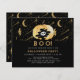 This Budget Funny Black Pumpkin Halloween Party invitation it features a small clouds with skulls, Little orange pumpkins, a golden-coloured starry night sky, a moon and lightning, the inscription boo on the black backgraund. The reverse side of this invitation features pattern a golden-coloured starry night sky and little pumpkins. Personalise it and enjoy it.