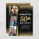 Modern Glam Black Gold Glitter Sparkle Elegant Script Calligraphy 3 Photo Film Roll Hollywood Glamour Any Age Birthday Invitation