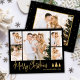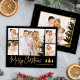 Budget Elegant Modern Calligraphy Script Simple Black and Gold 5 Photo Collage Multi Photo Christmas Card. This festive, minimalist, five (5) photo holiday card features a pretty photo collage, 3 pine tree doodle, „Merry Christmas” greeting text which is written in a whimsical hand lettered signature font type. On the reverse side snowy dots pattern with a nice family photo. Pretty greeting card for your family and friends in Winter Holiday season.