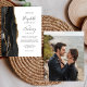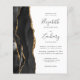 The left-hand edge of this elegant modern wedding invitation features a black watercolor agate border trimmed with faux gold glitter. The customisable text combines handwriting, copperplate and italic fonts in charcoal grey on a white background. Easily replace the sample image on the back with your own vertical photo.