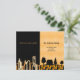 An elegant and minimalist moving annoucement card from a city life to a rural country life. Black and faux gold with a city skyline and a country home with sunflowers. Personalise and add your new address and message to your family and friends.