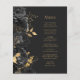 Budget Black Gold Dark Floral Wedding Menu