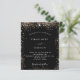 A modern, elegant wedding invitation. Black background decorated with faux gold glitter sparkles. Personalise and add your names and wedding details. White coloured letters.