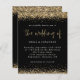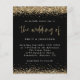 A value for money BUDGET alternative on a smaller size 4.5 x 5.6” semi-gloss 110lbs weight, which is of similar thickness to a postcard (however is not suitable to use as a postcard.). PLEASE NOTE there is ONE invite per sheet . Classic Black with Gold Glitter Wedding Invitation. An elegant set typography is in gold for the main heading the Wedding Of complementing the rest of the text which you can easily personalise, with gold faux glitter confetti borders at the top and bottom and also on the back.