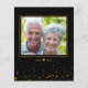 Golden Anniversary invitation with gold glitter confetti and cheer to 50 years typography on a black background. Personalise the black and gold invitations with details. Customise with the couple photo on the reverse to make it a keepsake card.