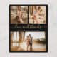 Budget, Modern, Elegant, Black and Gold Hand Lettered Wedding (3) Three Photo Collage Thank You personalised affordable low budget THIN card. Stylish wedding thank you card template featuring three photo on the front and one photo on the back. ***PLEASE NOTE! *** BUDGET PAPER/FLYER IS THIN. *** UPGRADE THE PAPER FOR A THICKER PAPER. *** With the text "Love and thanks" in a swirly hand lettered typography script font with swashes in gold colour on black background. Personalise the custom name and thank you message. Little heart shape between the names. If you prefer to handwrite your note, just delete the sample text to make more space. If You need help or matching item, please contact to designer!