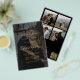 Elegant simple minimalist romantic budget affordable all in one RSVP and guest details black wedding invitation paper flyer template featuring a classy stylish chic trendy faux gold handwritten calligraphy script, a scanning QR CODE (automatically generated with your website link), one transparent photo overall and 4 photo collage. ++++++++++++ Easy to personalise with your engagement pictures and details on both sides! The invitation is suitable for spring summer autumn fall and winter modern trendy stylish weddings. +++++++++++++++++ PLEASE READ THIS BEFORE PURCHASING! This is a low budget affordable wedding invitation printed on a FLYER (advertising type paper). ++++ Please note that BUDGET PAPER IS THIN - You can upgrade to have this card printed on cardstock ++++ ENVELOPES NOT INCLUDED.