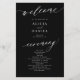 Modern simple minimalist white script trendy solid black ceremony and party cheap BUDGET wedding program paper flyer template featuring chic trendy romantic elegant calligraphy and custom photo overlay on the backside. ++++++++++++ Easy to personalise with your custom text and picture on both sides! ++++++++++++++++++++++++++++ PLEASE READ THIS BEFORE PURCHASING! This is a cheap budget program printed on a PAPER FLYER (advertising type of paper). ++++++++++++++++++ PLEASE NOTE that the background and script colours are editable. You can change the template after selecting CUSTOMIZE option down below the PERSONALIZE IT menu.