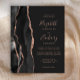 The left-hand edge of this elegant modern wedding invitation features a black watercolor agate border trimmed with faux rose gold glitter. The customizable text combines rose handwriting, copperplate and italic fonts on a dark charcoal gray background. The reverse side features a matching black and rose gold agate design. NOTE: Envelopes are not automatically included with these budget invitations, so please remember to choose the "white envelopes" option!