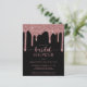 Luxury Glam Black and Rose Gold Sparkle Glitter Drips Bridal Shower Invitation featuring faux glitter drips and classy chic black background. Perfect for your luxury event. **Our BUDGET paper is smaller, lighter, and more delicate, but still beautiful! Don't forget the envelopes!** If you need assistance or matching items, please contact us at cedarandstring@gmail.com.