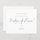 Minimal Black Script Matron of Honour Request. A budget price 4.5” x 5.6” alternative. Available in a SEMI GLOSS 110 lb CARD STOCK which is the default option (thicker for invitations) Envelopes are an optional extra and are slightly larger than the card size. Simple style in classic black and white to ask this all important question. Maid Of Honour is in a stylish set script is in the centre. Text and background colours can be changed if you wish to better suit your wedding theme via the customise further option.