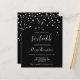 This modern design features faux silver triangular confetti on a black background. The word "sixtieth" appears in elegant light grey handwriting font. Personalise the invitation with the name of the guest of honour in light grey handwriting font, along with the date, venue, and other details in light grey sans serif type.