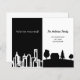 An elegant and minimalist moving annoucement card from a city life to a rural country life. Black and white with a city skyline and a country home. Personalise and add your new address and message to your family and friends.