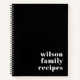 Modern Black White Family Name Typography Recipe Notebook