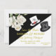 Romantic and unique black and white floral budget Save the Date. Gold lettering to set it off and a black top hat for the gentleman and a white hat for the bride-to-be. Carefully labelled "Ms. and Mr." to change as the event draws closer, of course. For any design questions or additional customisation and / or matching items, just send an email to charmdesignstudio@rcn.com and we'll be delighted to assist.