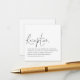A MINI Size 2.5" square enclosure in Black and White Script for your Wedding Reception details. A budget friendly SMALLER 4.5” x 5.6” alternative. Available in a SEMI GLOSS 110 lb CARD STOCK or a SATIN FINISH 80 lb THINNER PAPER STOCK. Envelopes are an optional extra. Reception is in a set handwritten style with the details beneath. Lots of white space at the top for a contemporary touch! Easily personalise the rest of the text to your own info.