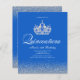 Beautiful Blue and Silver Quinceanera Invitations. Featuring silver glitter and diamond crown with blue gemstone accents. Made for special for teens, this blue and silver glitter Quinceanera invitation will be a fabulous introduction to your special day.