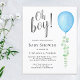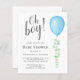 This budget couples boy's Baby Shower Invitation is decorated with a watercolor blue balloon and green eucalyptus and says "Oh Boy!"