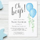 This budget twin boy's Baby Shower Invitation is decorated with watercolor blue balloons and green eucalyptus and says "Oh Boys!"