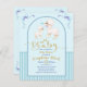 Bah bah baby! This sweet design features a blue ribbon bow border and a cute baby lamb with it's mummy sheep wearing a matching blue bow. This BUDGET invitation is perfect for your little lamb themed baby shower for a baby boy. This baby shower invitation is customisable and allows you to add your own text. Soft blue stripes and gold colour scheme is great for spring baby showers.