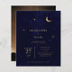 A minimalist modern celestial wedding invitation features a simple and elegant design. It includes a gold foil moon and stars that gently sparkle, set against a clean background with a photo at the back that can be customise. The invitation uses classic serif typography, which adds a traditional and formal touch with its neat and clear style. The combination of modern design, shiny gold details, and timeless fonts makes the invitation both beautiful and inviting, perfect for announcing a special and elegant wedding day.