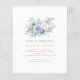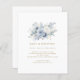 Budget Dusty Blue Florals Gold Script QR Code Wedding Invitation. A budget priced size 4.5 x 5.6” 110lbs semi-gloss, similar in thickness to a postcard. There is ONE per sheet. Modern and minimalist with this elegant nature inspired design. With a pale blue and white bouquet above simplistic and fully editable typography. Add your QR code to your wedding website on the back so your guests can RSVP and see all the details online without the need for separate enclosures. Text and background colours can be changed if you wish to better suit your wedding theme via the customise further option.