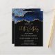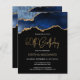 This trendy 60th birthday invitation features a watercolor image of an agate geode in shades of blue with faux gold highlights. The words "60th Birthday" appear in faux gold glitter in decorative modern handwriting font. Customise it with the name of the honoree in gold coloured text and the details in white. The same blue agate image appears on the reverse side.