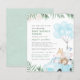 Celebrate together from afar with a drive by baby shower! Featuring a pale blue car with a hand-drawn lion wearing a crown, a hippo, giraffe, elephant, and zebra. There are butterflies, birds, and blue balloons. With lush green watercolor palm leaves and faux gold confetti. Your baby shower details appear to the left of the car in chic script typography. There is a sweet little poem that reads "SINCE WE CAN'T BE TOGETHER TODAY, LET'S SHOWER THE FAMILY IN A DIFFERENT WAY. BEEP, HONK, SHOUT, AND WAVE, IT'S A DRIVE BY BABY SHOWER PARADE!". As part of the budget selection here on Zazzle, these invitations do not come with envelopes nor do they fit snugly in a standard-sized envelope. The closest size is A6 but there will be a gap of approximately half an inch. If you don't mind the lack of snugness you could use such widely available A6 envelopes. Otherwise, this design can be transferred to a standard 5x7 format (which comes with envelopes) using the design transfer tool. As a rough guide, as of the time of writing (January 2021) 100 budget invitations (including a volume discount) would cost around $39 whereas 100 standard 5x7 invites including envelopes would cost approximately $135. Your mileage may vary depending on Zazzle's available promo codes, site wide sales, or changes in pricing.