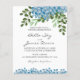 Elegant design features blue hydrangeas, foliage and greenery. Fully customisable, click to Customise Further to change font style, size and or colour.