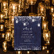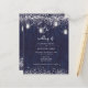 Budget, blue rustic mason jar wedding invitation with string lights.